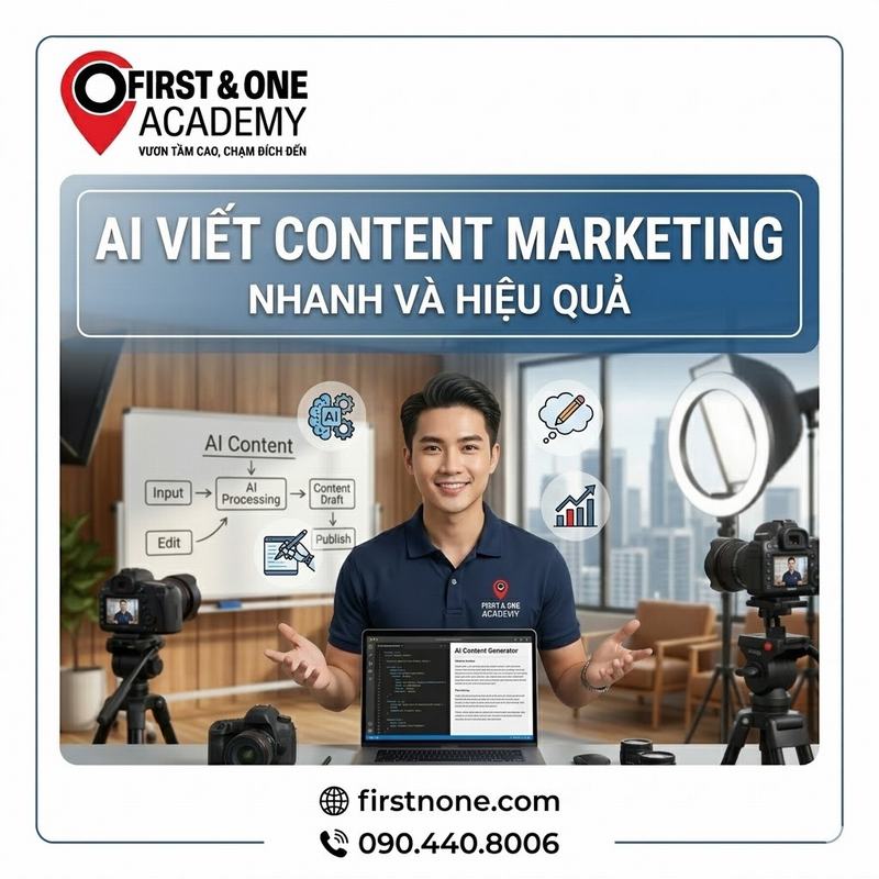 First & One Academy – Trung tâm đào tạo Marketing & Bán hàng hiệu quả từ 2013 tự hào là đơn vị đi đầu trong việc đào tạo sử dụng các công cụ marketing số, trong đó có AI viết content marketing. Chúng tôi cam kết đem đến cho doanh nghiệp và cá nhân những kiến thức cập nhật, thực tiễn nhất, giúp bạn nâng cao năng lực, cạnh tranh và thành công trên thị trường đầy biến động này.