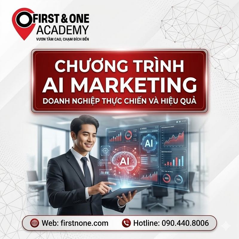 Trong bối cảnh thị trường ngày càng cạnh tranh, việc nâng cao năng lực kiến thức và kỹ năng về AI marketing là vô cùng cần thiết. Chính vì vậy, First & One Academy đã xây dựng các chương trình đào tạo chuyên sâu, giúp các doanh nghiệp và cá nhân nắm bắt xu hướng mới, ứng dụng AI một cách bài bản, thực chiến.