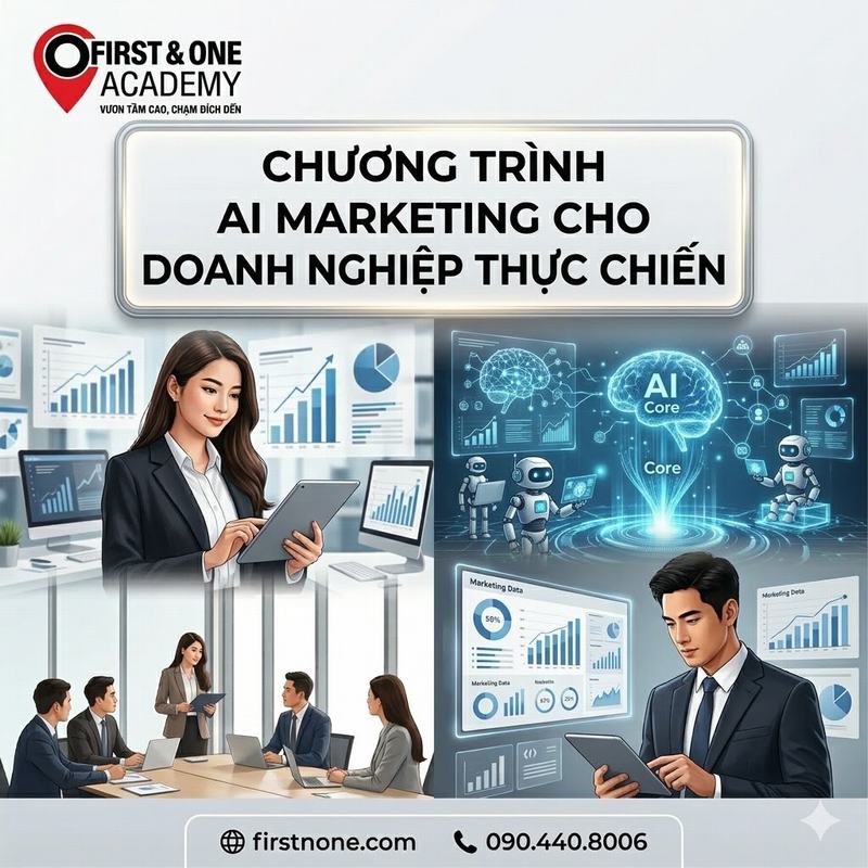 Chương trình AI marketing cho doanh nghiệp là một cuộc cách mạng trong lĩnh vực tiếp thị, mở ra nhiều cơ hội và thách thức mới. Từ việc hỗ trợ sản xuất nội dung, tối ưu chiến dịch cho đến xây dựng lộ trình phù hợp và huấn luyện đội ngũ, AI đang trở thành công cụ không thể thiếu để doanh nghiệp duy trì vị thế dẫn đầu trong thị trường cạnh tranh gay gắt ngày nay. Việc đầu tư một cách bài bản, chiến lược, cùng sự hỗ trợ từ các trung tâm đào tạo uy tín như First & One Academy sẽ giúp doanh nghiệp khai thác tối đa tiềm năng của AI, tiến xa hơn trên hành trình phát triển dài hạn.