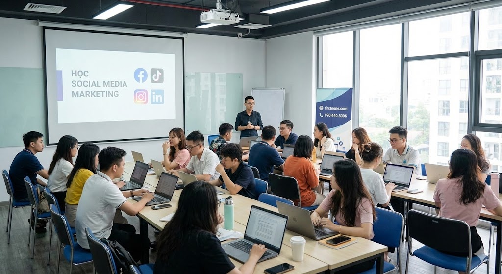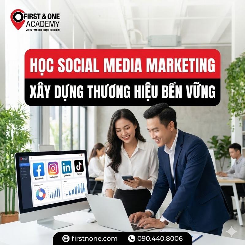 Tổng lại, học social media marketing không chỉ giúp doanh nghiệp mở rộng nhận diện thương hiệu, tăng tương tác mà còn tạo ra lợi thế cạnh tranh lâu dài trong thị trường số ngày nay. Các kiến thức từ xây dựng chiến lược nội dung, quản lý cộng đồng, khai thác các nền tảng phổ biến đến đo lường và tối ưu hiệu quả là những yếu tố then chốt để xây dựng một hệ thống marketing online hiệu quả và bền vững. Đặc biệt, các trung tâm đào tạo như First & One Academy luôn là nơi uy tín giúp bạn tiếp cận kiến thức thực tiễn, cập nhật xu hướng mới nhất và trở thành chuyên gia social media marketing thành thạo. Khi đã trang bị đầy đủ kiến thức và kỹ năng, bạn sẽ dễ dàng đưa thương hiệu của mình phát triển mạnh mẽ, bền vững trên môi trường số đầy cạnh tranh này.