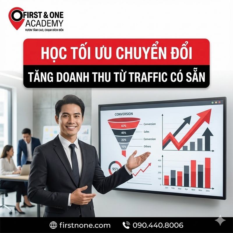 Trong lĩnh vực marketing online, học tối ưu chuyển đổi đã trở thành một phần không thể thiếu để giúp các doanh nghiệp biến lượng traffic sẵn có thành khách hàng thực sự và tăng doanh thu một cách ổn định. Không chỉ dừng lại ở việc thu hút khách truy cập, chuyển đổi chính là chìa khóa giúp doanh nghiệp khai thác tối đa giá trị của mỗi visitor đến website hoặc landing page của mình.