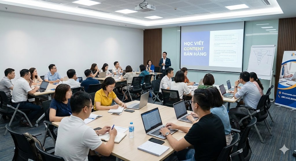 Tại First & One Academy, chúng tôi tự hào là trung tâm đào tạo hàng đầu về marketing và bán hàng, đã giúp hàng nghìn học viên nắm vững kỹ năng viết content bán hàng chuyên nghiệp, ứng dụng thành công vào thực tế doanh nghiệp. Các khoá học của chúng tôi đều dựa trên nền tảng kiến thức vững chắc, kết hợp thực hành thực tế, giúp bạn làm chủ các công cụ, công thức viết nội dung hiệu quả.