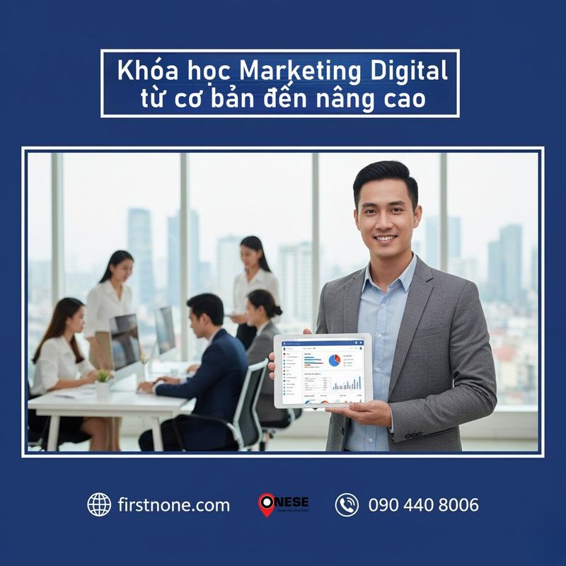 Tổng kết lại, khóa học marketing digital là bước đầu quan trọng để bạn hoặc doanh nghiệp thích nghi với xu hướng chuyển đổi số toàn cầu. Nó cung cấp kiến thức nền tảng từ căn bản đến nâng cao về các kênh tiếp thị quan trọng như SEO, SEM, social media, quảng cáo trực tuyến và nhiều kỹ năng thực hành khác giúp chiến dịch marketing trở nên chuyên nghiệp, hiệu quả và bền vững. Việc chọn trung tâm đào tạo uy tín như First & One Academy sẽ đảm bảo bạn có nền tảng vững chắc, mở ra nhiều cơ hội nghề nghiệp, phát triển cá nhân và doanh nghiệp trong môi trường chuyển đổi số không ngừng. Tham gia các chương trình đào tạo này chính là khoản đầu tư lớn cho tương lai thành công của bạn trong thời đại số.