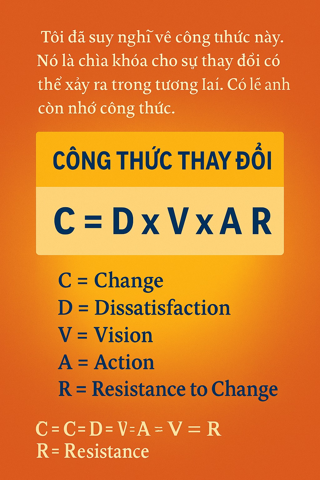 Hành trình thiết kế lại cuộc đời không bao giờ kết thúc. Thực hiện các kế hoạch đã đề ra, đồng thời thường xuyên đánh giá tiến trình để xác định xem có cần điều chỉnh gì phù hợp hơn không.
